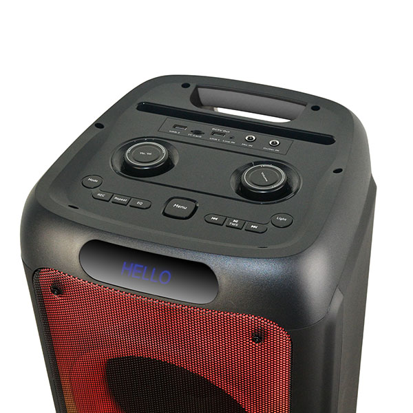 Портативная акустика, AUX кабель, кабель для зарядки, беспроводной микрофон, пульт ДУ, руководство по эксплуатации, гарантийный талон.