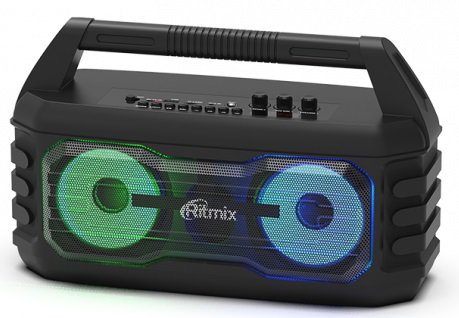 Устройство оборудовано разъемом 3,5 мм (AUX) для подключения внешних источников аудиосигнала. Также к Ritmix SP-610B можно подключить микрофон через разъём 6,3 мм. Модель оснащена FM-тюнером, позволяющим прослушивать любимые радиостанции, и встроенным MP3-плеером