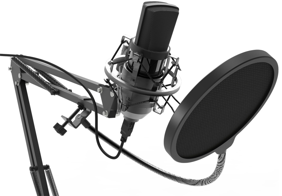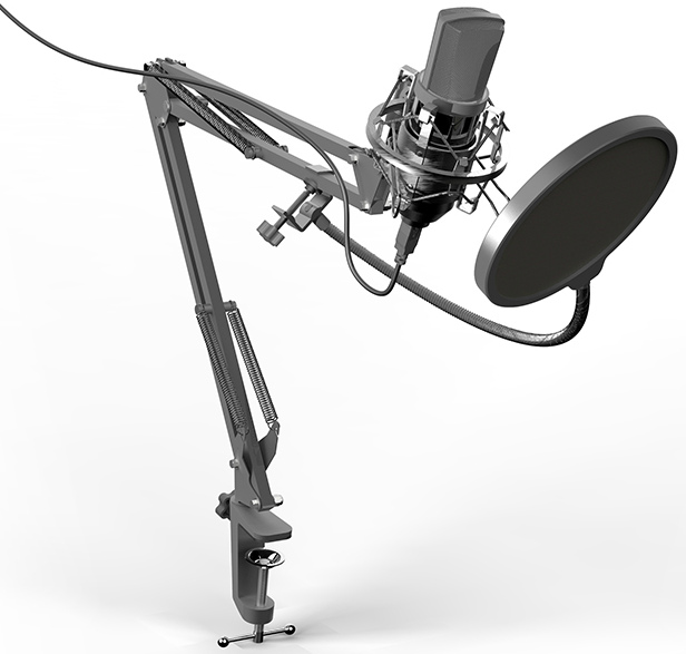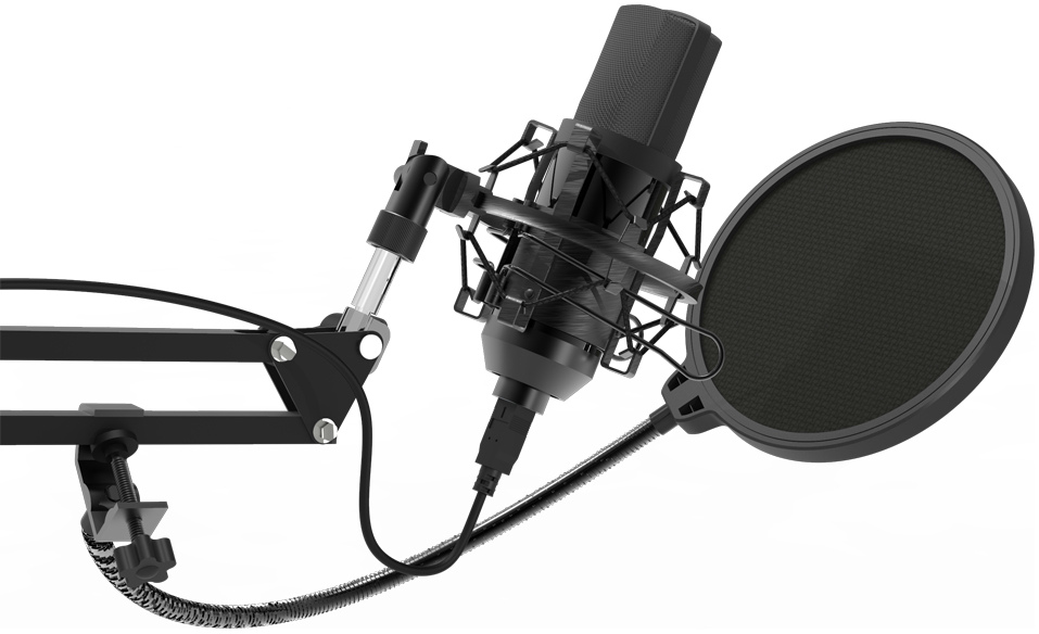 Конденсаторный микрофон на стойке-пантографе со струбциной, позволяющей закрепить устройство на столе или любой другой плоской поверхности. Предназначен для деятельности в таких сферах как: skype, звукозапись, игры, стриминг.