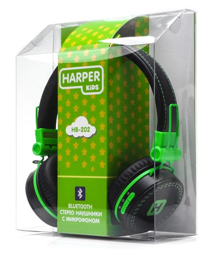 Наушники Harper Kids HB-202 green Мониторные,с микрофоном,беспроводные,Bluetooth