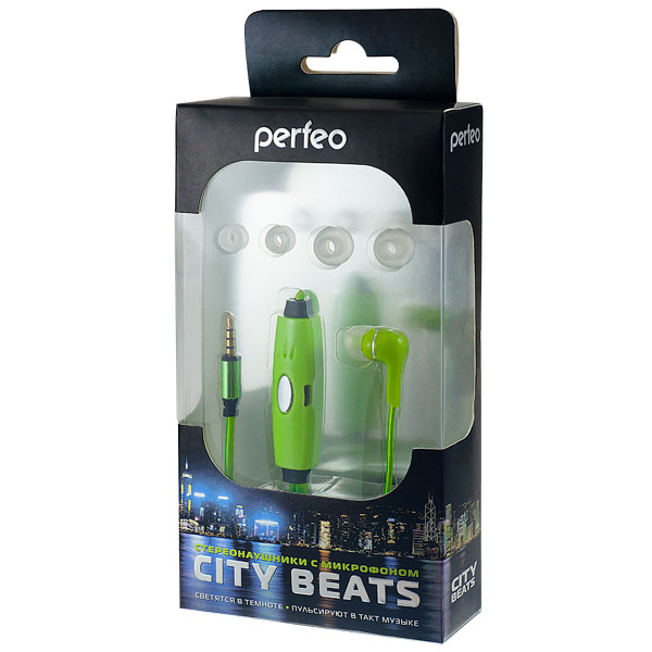 Наушники вкладыши с микрофоном Perfeo City Beats зеленые
