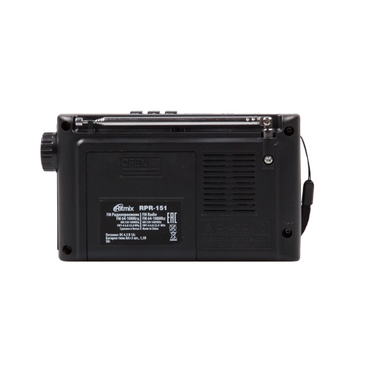Ritmix RPR-151 – портативный восьмидиапазонный радиоприёмник, охватывающий в том числе и MP3-файлов с карт памяти microSD или USB-флэшки. Устройство снабжено встроенным аккумулятором.