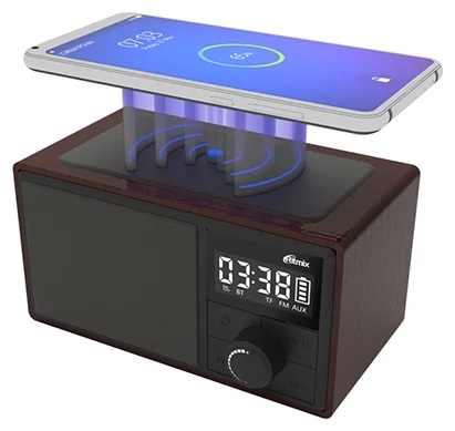 Удобные многофункциональные FM-радиочасы с будильником, Bluetooth и мр3 плеером с карт памяти, поддерживающие функцию беспроводной зарядки смартфонов.
