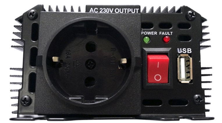 Автомобильный инвертор напряжения с модифицированной синусоидой, оснащён USB-портом и стандартной розеткой