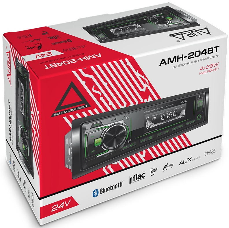 Автомагнитола AURA MP3/WMA AMH-204BT зеленая, Bluetooth,2xUSB/micro SD, FLAC
