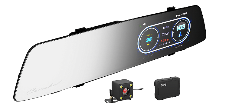 Видеорегистратор Camshel Sturman GPS зеркало,2 кам.,4.3",1920х1080,170*,база камер