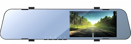 Регистратор совмещен с салонным зеркалом заднего вида.