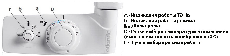 Режим «24 часа Auto » - автоматическое повторное включение функции «Boost» каждые 24 часа. Каждый день, в одно и то же время прибор будет работать на максимальной мощности в течение 2 часов, вне зависимости от температуры в помещении. После окончания работы в режиме «Boost», прибор переходит в ручной режим работы. Режим предназначен для ежедневного интенсивного прогрева помещения. Включается поворотом ручки.