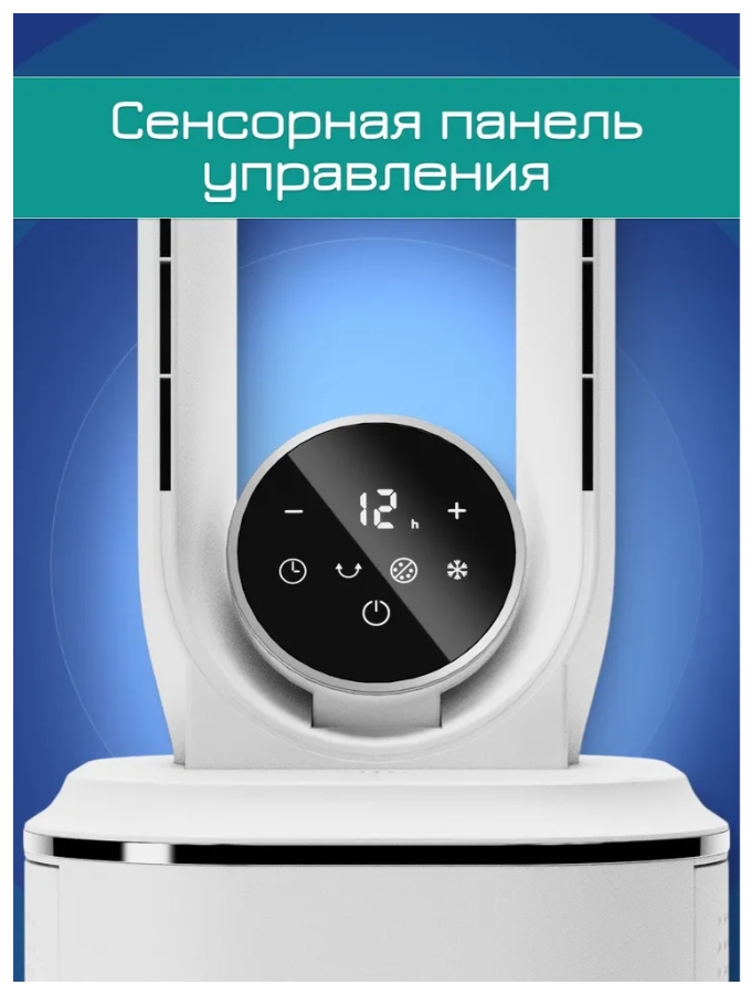 Резервуар объёмом 1,8 литра позволяет использовать воду или лёд, усиливая эффект освежения. Три режима подачи воздуха позволяют подобрать наиболее комфортный вариант, а встроенный таймер на 12 часов позволяет использовать вентилятор в течение ночи без лишнего контроля.