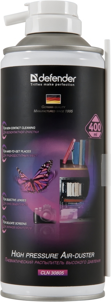 Пневмораспылитель Defender CLN30805 предназначен для очистки труднодоступных мест компьютерных клавиатур, принтеров, CD/DVD-ROM и офисной техники, а также удаления пыли с линз оптических приборов, экранов мониторов, фотопленок, слайдов и других деликатных поверхностей.