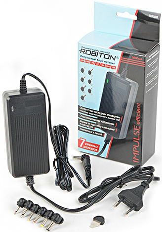 ROBITON TN3000S — импульсный блок питания 3000 мА. Предназначен для питания от источника переменного тока 100-240 В приборов с напряжением 5,0 / 6,0 / 7,5 / 9,0 / 12,0 / 13,5 / 15,0 В и максимальным входным током 3000 мА. Набор из 7 наиболее распространенных входных насадок и выбор полярности позволяют использовать его для питания большого количества современных электроприборов, цифровых устройств, устройств автоматики и др. Автоматическая защита от короткого замыкания и защита от перегрузок.