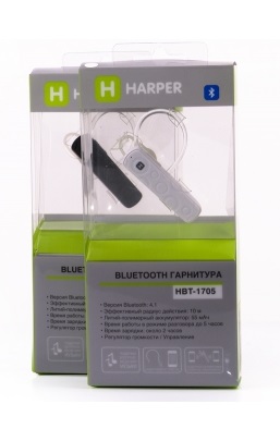 Harper HBT-1705 – это простая, но очень функциональная Bluetooth-гарнитура. Она может работать со всеми стандартами протокола беспроводной связи начиная с версии 1.2 и заканчивая версией 4.1 (самая популярная на текущий момент).