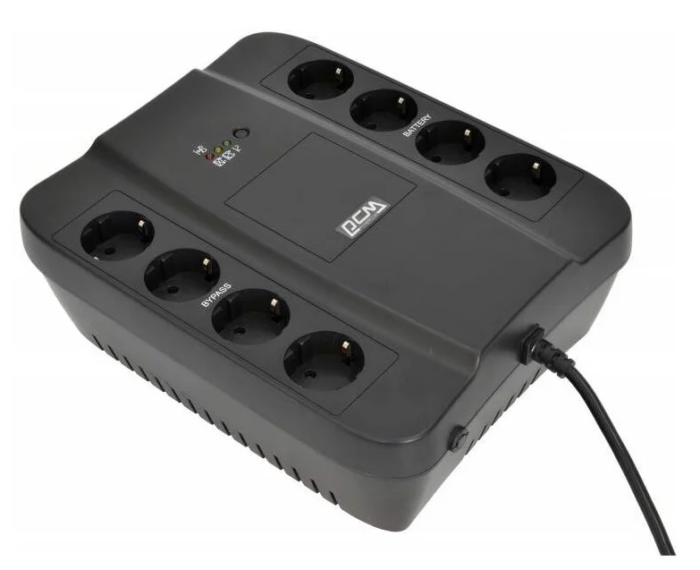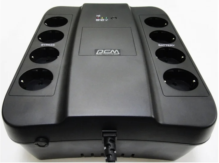 Источник бесперебойного питания POWERCOM Spider SPD-650N относится к типу back и подходит для подключения сразу 8 потребителей электроэнергии. Все розетки имеют стандарт EURO, при этом 4 из них приспособлены для работы с батарейной поддержкой, а 4 других – это байпассные разъемы с фильтрацией. Переключение на работу от аккумуляторов происходит за 6 мс, при этом выходное напряжение и частота тока составляют 220 В (+/- 5%) и 50/60 Гц (+/- 1%) соответственно. Для контроля за функционированием и состоянием источника бесперебойного питания POWERCOM Spider SPD-650N предусмотрена цветовая светодиодная индикация, которая информирует пользователя о включении питания от аккумулятора, его заряде и перегрузке устройства. Для восполнения полной емкости батареи (7,2 Ач), прибор должен быть подключен к сети в течение 8 часов.