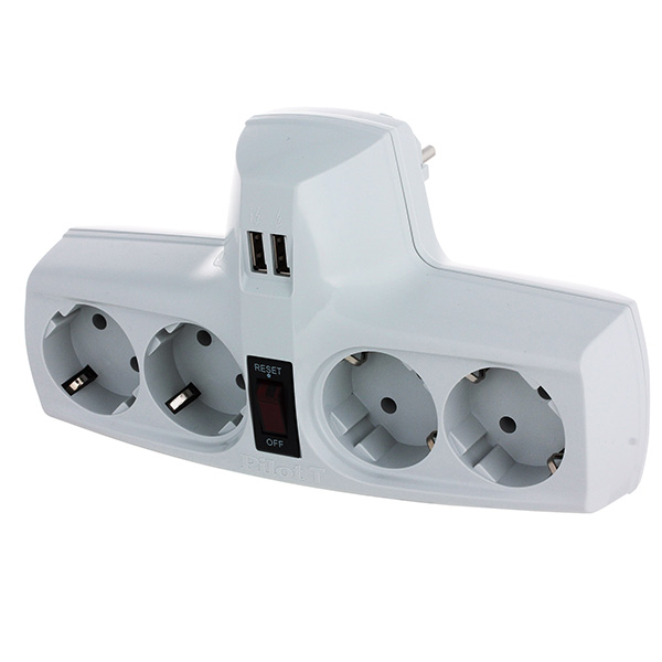 Сетевой фильтр оснащён четырьмя розетками евростандарта, позволяющими подключить к нему до четырёх электроприборов. Благодаря диагональному расположению отверстий вилки подключенных приборов не будут перекрывать соседние розетки.