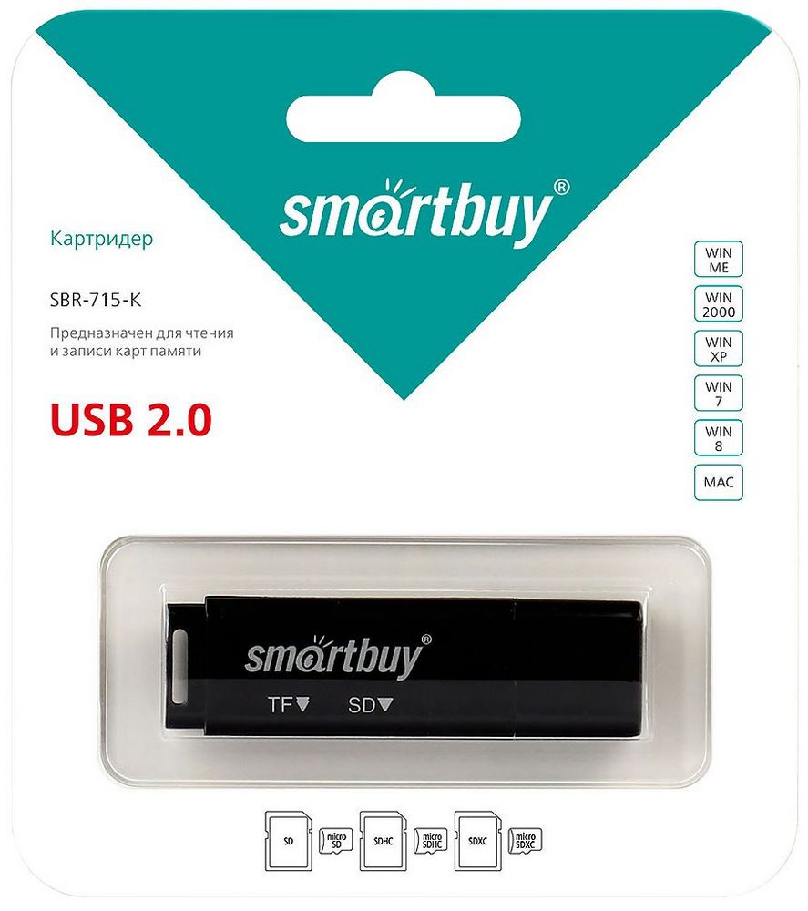 Карт-ридер USB2.0 Reader Smartbuy SBR-715-K черный microSDHC/SDHC