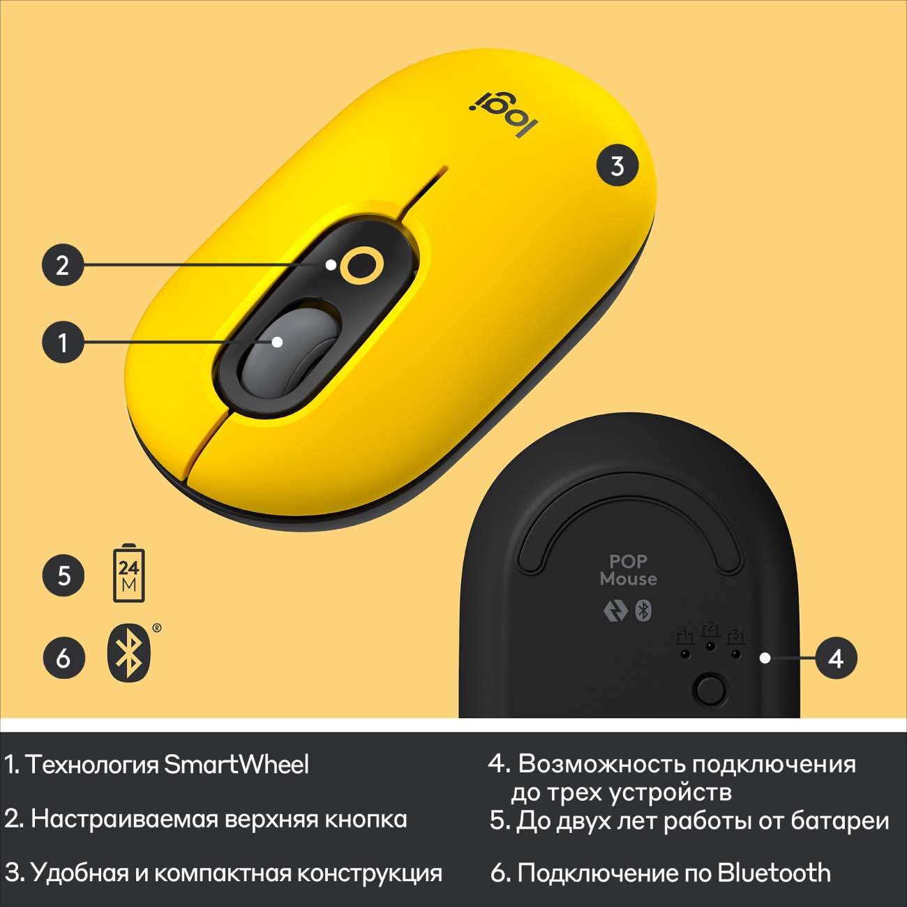 Мышь беспроводная Logitech POP Mouse Blast Yellow