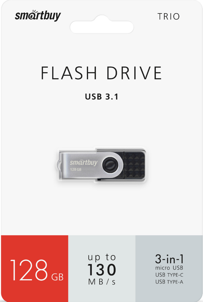 USB флеш накопитель_128 Gb SmartBuy TRIO 3-in-1 OTG USB Type-A+USB Type-C+micro USB/ SB128GBTRIO