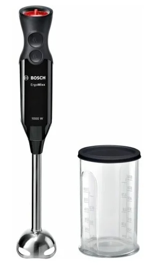 Простая готовка с Bosch ErgoMixx: максимальная мощность. Оптимальный комфорт. Максимальная мощность мотора 1000 Вт: для переработки даже твердых ингредиентов и для эффективной работы всех насадок. Quattro Blade технология: инновационный нож с 4 острыми лезвиями для получения идеальных результатов Эргономичная форма рукоятки и большие удобные кнопки обеспечивают комфортное использование блендера во время приготовление любимых блюд. 12 настроек скорости плюс функция Турбо для получения идеальной консистенции для любого рецепта.