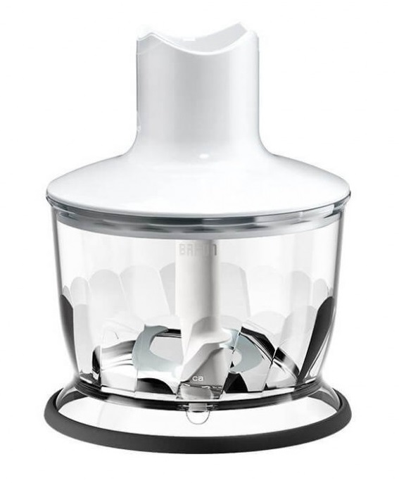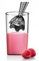В комплекте к нему идёт мини-измельчитель, венчик для взбивания и подходящий по размерам мерный стакан. К нему также прилагается насадка, созданная специально для того, чтобы препятствовать разбрызгиванию продуктов.