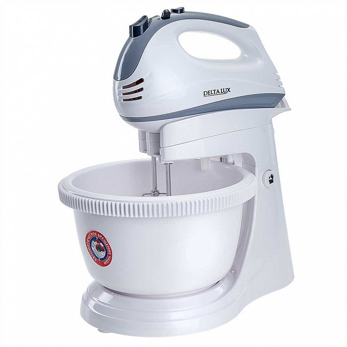 Миксер DELTA LUX DE-7901C белый с серым 400Вт,самовращ. чаша, 5 скоростей, турбо