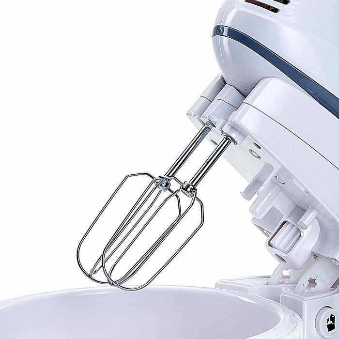 Миксер электрический с чашей предназначен для смешивания жидких и сыпучих продуктов, приготовления соусов и десертов (взбитых сливок, пудингов, коктейлей, майонеза) с помощью венчиков, а также для замешивания теста различной консистенции насадками для замешивания в бытовых и аналогичных условиях.