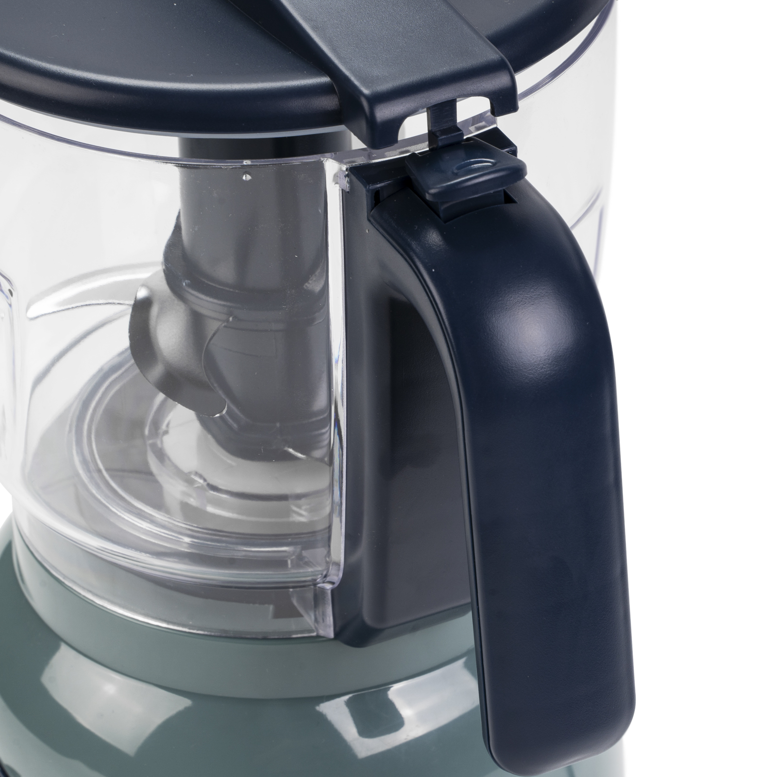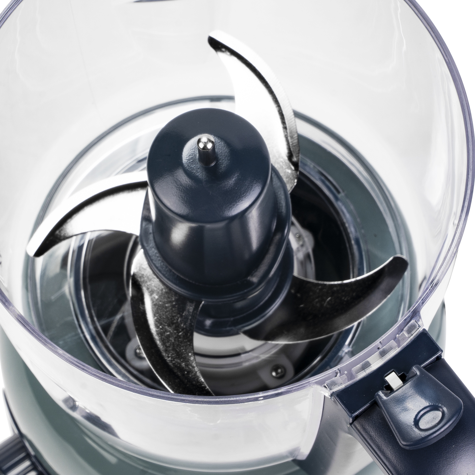 Пластиковая чаша-измельчитель объемом 1,2 литра имеет четырехлопастный нож из высококачественной нержавеющей стали.