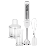 Готовить на кухне легко и просто поможет погружной блендер HIBERG. Благодаря мощности 1000 Вт и турбо режиму смузи, коктейли и другие напитки вы с лёгкостью приготовите в стакане при помощи погружного блендера. 5 скоростей с функцией плавного переключения позволяет взбивать яйца, соусы, муссы, майонез, паштеты. А для сливок и жидкого теста замените насадку на венчик. Чаша с ножом из прочной пищевой нержавеющей стали без труда измельчит орехи, лёд и приготовит фарш.