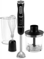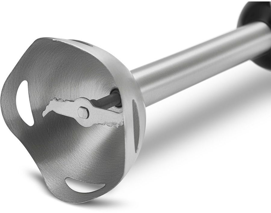 Для приготовления разнообразных блюд лучше всего использовать погружной блендер POLARIS PHB 1072. Его мощность составляет 1000 Ватт, что позволяет быстро и качественно измельчить необходимые продукты, взбить крем в густую пену и смешать ингредиенты в однородную массу. Для выполнения этих функций в комплекте с прибором есть венчик для взбивания и измельчитель. Точно отмерить количество необходимых продуктов поможет мерный стакан. За скорость выполнения действий отвечает регулятор, с помощью которого можно выбрать один из двух скоростных режимов. Для ускорения работы прибора необходимо воспользоваться имеющимся турборежимом.