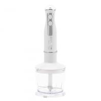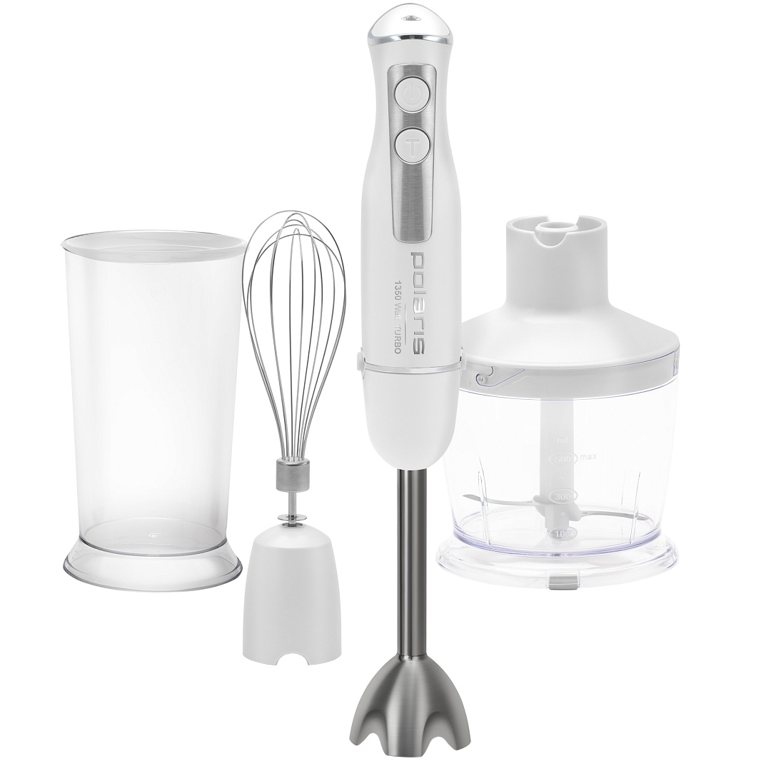 Особенности Кнопка включения. Скоростной режим ТУРБО. Насадка блендера и венчик из нержавеющей стали. Низкий уровень шума.