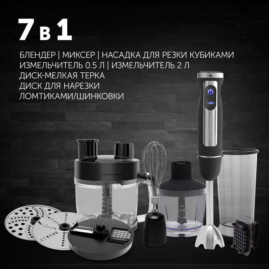 Многофункциональный блендер POLARIS PHB 1589AL подойдёт для создания настоящих кулинарных шедевров. Он может не только смешивать, взбивать и измельчать практически любые ингредиенты. Также в комплекте предусмотрены насадки для нарезки кубиками, ломтиками и шинковки. И всё это — в одном устройстве, которое не займёт много места на кухне.
