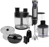 Описание 7 в 1: блендер, миксер, насадка для резки кубиками, измельчитель 0.5 л, измельчитель 2л, мерный стакан 0,5л, диск-мелкая терка, диск для нарезки ломтиками/шинковки