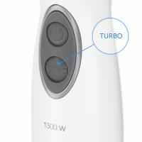 Модель RHB-2967 оснащена высокоскоростным турборежимом, при котором нож блендера за минуту совершает 16000 оборотов. Включайте режим «Турбо», завершая процесс обработки продуктов. С его помощью вы с легкостью уберете комочки муки в блинном тесте и измельчите кусочки овощей в соусе или супе.
