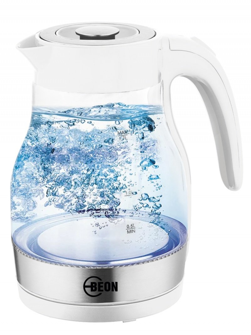 Чайник BEON BN-3035 белый/нерж. 2200Вт,1,7л, LED-подсветка, стекло, съемная крышка