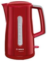 Современный электрочайник BOSCH TWK 3A014 объемом 1.7 литра за счет высокой мощности в 2400 Вт вскипятит воду для чая или кофе за пару минут. Стильный прибор элегантного красного цвета будет выделяться в любом интерьере. Высококачественный пластик, из которого создан электрочайник, способен выдержать самую высокую температуру и при этом он не выделяет в кипящую воду вредные вещества. В днище корпуса встроена нагревательная спираль из нержавеющей стали закрытого типа, что делает чистку чайника быстрой и удобной. Кроме того, электрочайник оснащен фильтром, задерживающим частицы накипи и не давая им попасть в кружку. BOSCH TWK 3A014 отвечает всем требованиям безопасности. Для этого предусмотрена блокировка съемной крышки и блокировка включения пустого чайника.
