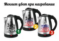 CENTEK CT-0050 - чайник с декоративным орнаметом, меняющим цвет при нагревании корпуса прибора. Оснащен базой с центральным подключением и возможностью вращения на 360 градусов, индикатором сети и автоотключением после закипания или при перегреве.
