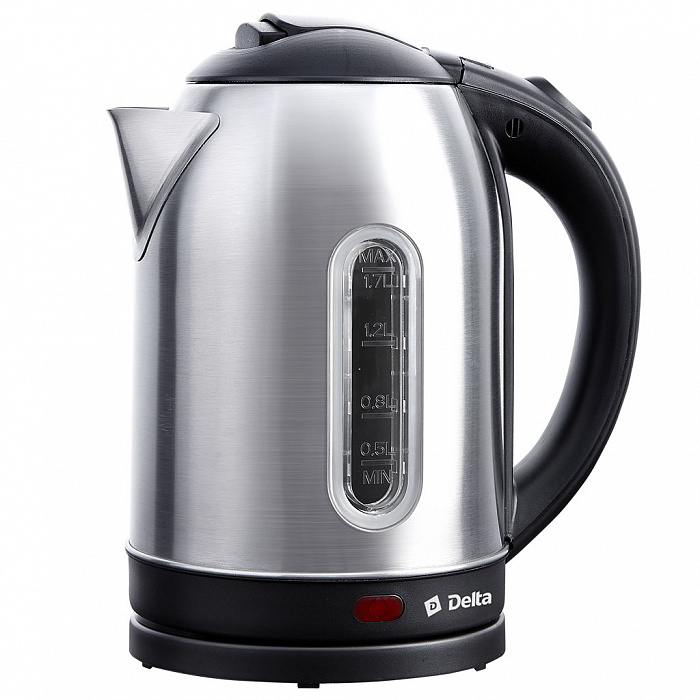 Чайник DELTA DL-1104 нерж. черный 2000Вт,1,7 л, фильтр, окно, ионы серебра