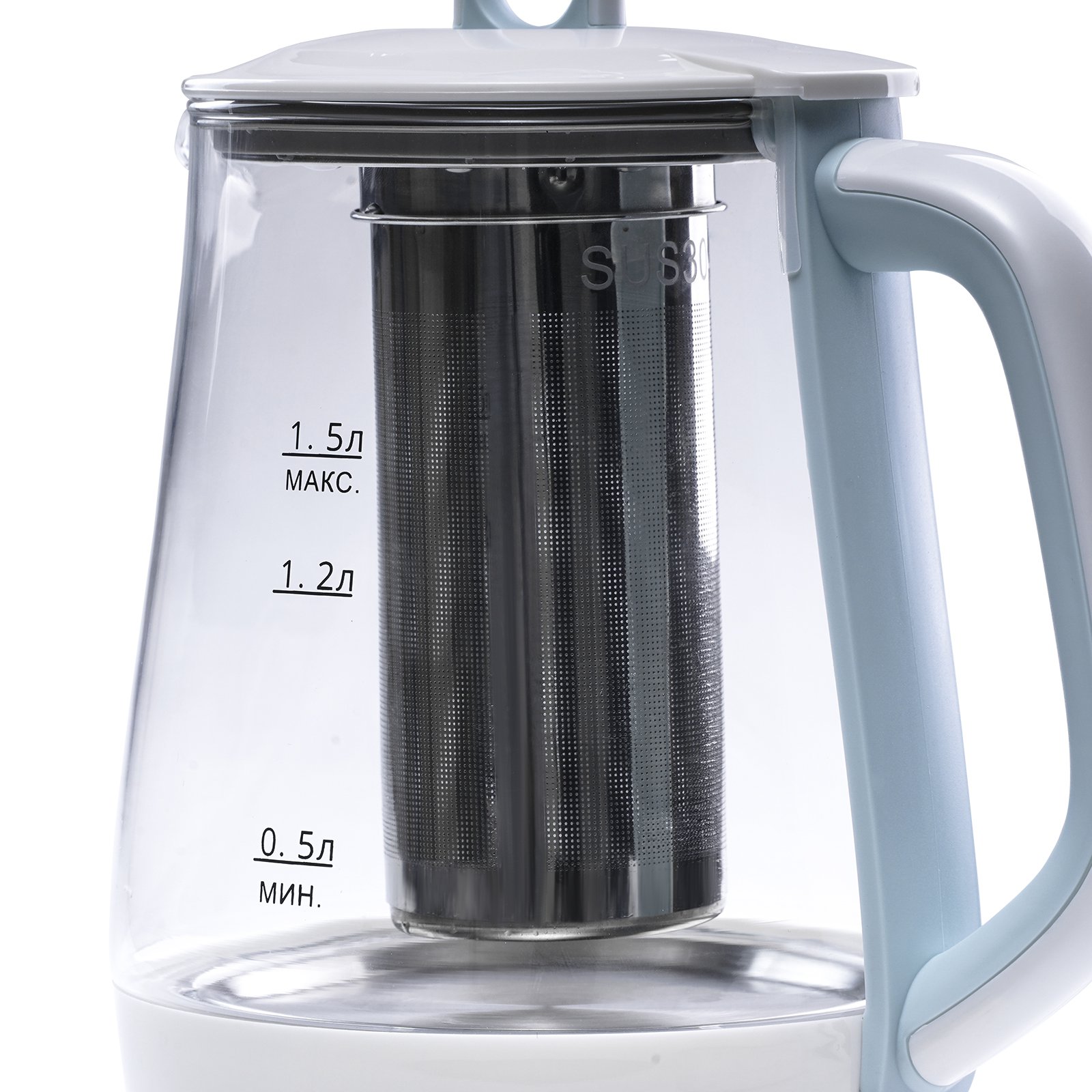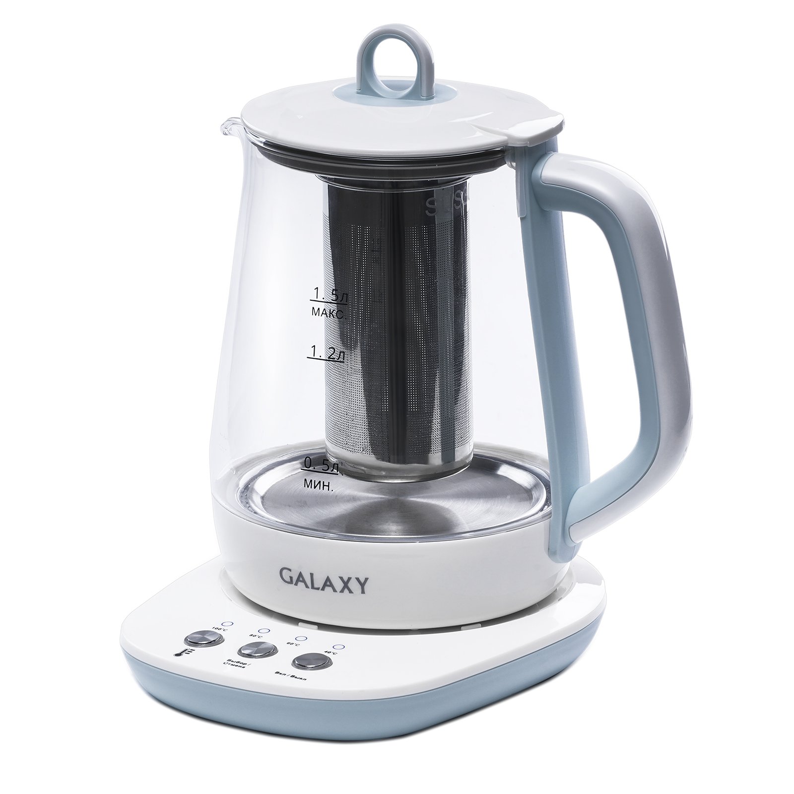 Чайник GALAXY GL 0591 голубой 1200Вт, 1.5л, стекло, (40,60,80градусов)