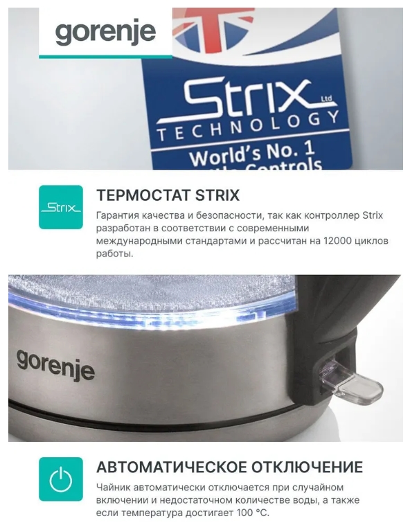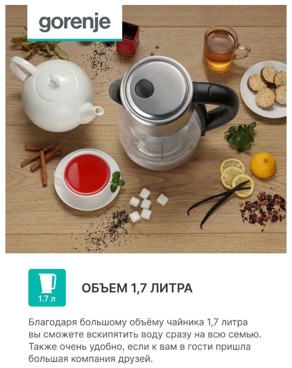Электрический чайник Gorenje K17GE - это удобный и функциональный прибор для быстрого нагрева воды. Он обладает следующими характеристиками: