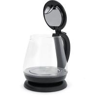 Недорогой электрический чайник POLARIS PWK 1859CGL черного цвета, с прозрачной колбой и съемным фильтром, защищающим от частичек накипи. В данной модели воду можно заливать без открытия крышки, кнопка которой расположена на ручке. Нагревается электрочайник быстро благодаря мощности бытового устройства 2200 Вт. На подставке держится ровно, устойчиво и с возможностью поворота на 360 градусов. Есть опция автоматического отключения.
