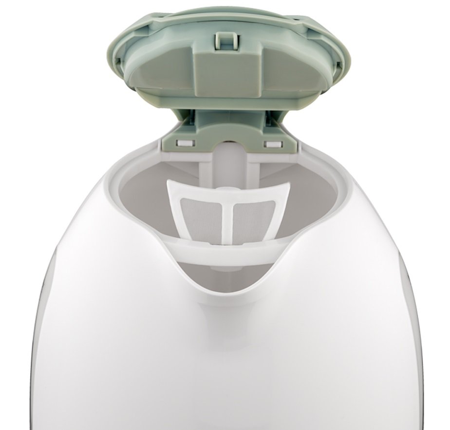 Прибор оснащён удобными окнами  для контроля уровня воды с обеих сторон.  Эргономичная ручка, традиционная система открытия крышки, закрытый нагревательный элемент сделают эксплуатацию прибора еще проще и комфортнее.
