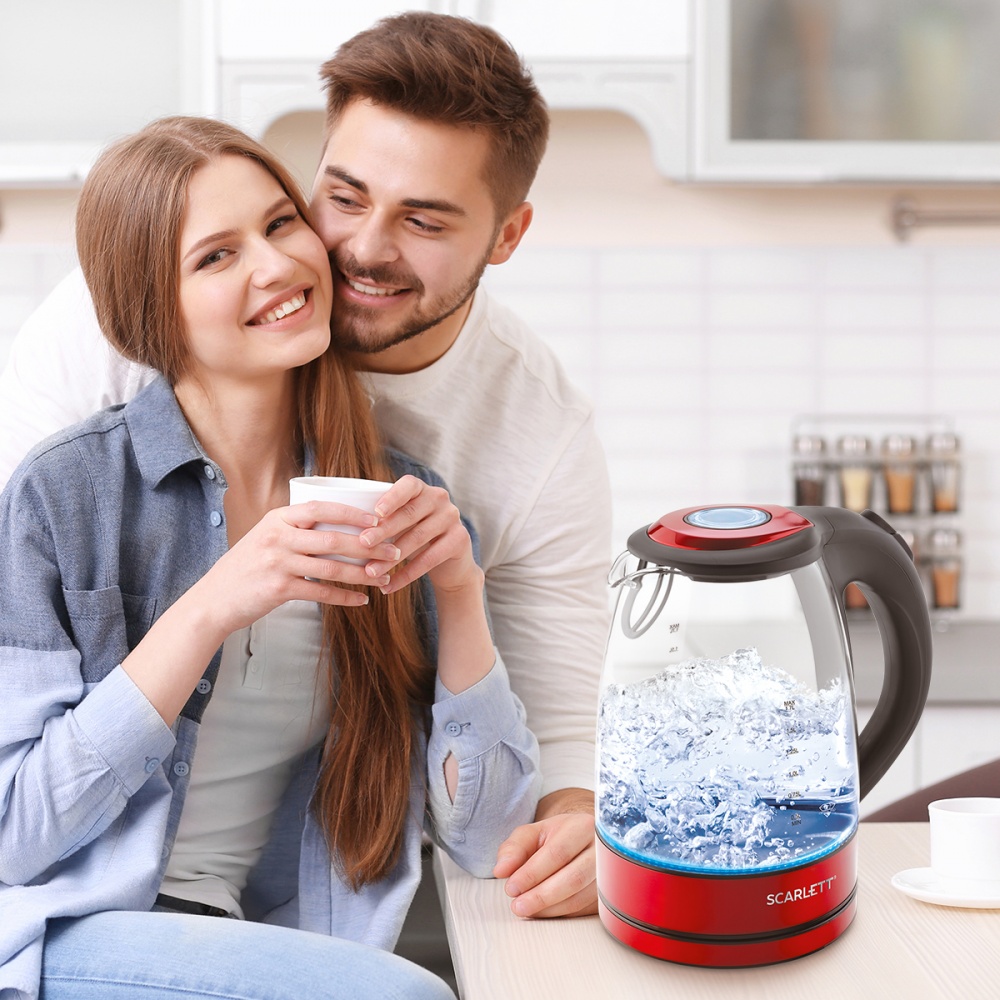 Электрический чайник SC-EK27G99 мощностью 1850-2200 Вт, объемом 1,7 л. Корпус из высококачественного термостойкого стекла не изменяет полезных свойств воды и позволяет наблюдать за завораживающим процессом кипячения. Прибор также оснащен нейлоновым фильтром, закрытым нагревательным элементом. Также в чайнике предусмотрена система многоуровневой защиты Safe Work: автоматическое отключение при закипании и отключение при недостаточном количестве воды. Удобная кнопка открытия крышки делает эксплуатацию чайника ещё более простой и интуитивно понятной!