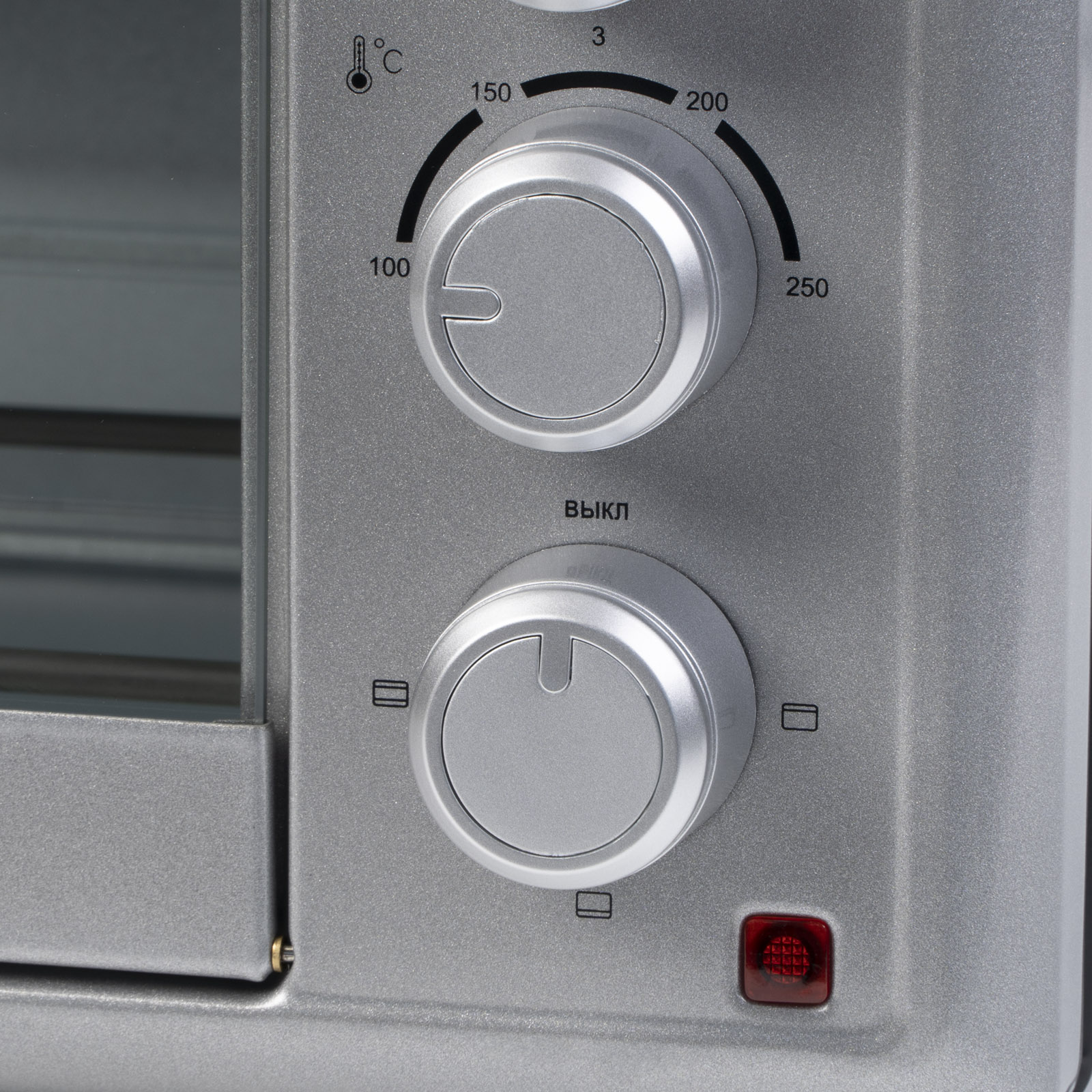 Мини-печь имеет компактный размер и объем 30 литров, что позволяет установить ее в любом помещении и готовить блюда для всей семьи.