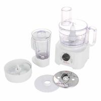 Вы получите S-образный нож, предназначенный для измельчения, и диски для шинкования и эмульгирования. С их помощью можно быстро нарезать овощи, фрукты и зелень, порубить мясо в фарш, сделать домашний майонез и другие соусы. Объём основной чаши составляет 2,2 л.