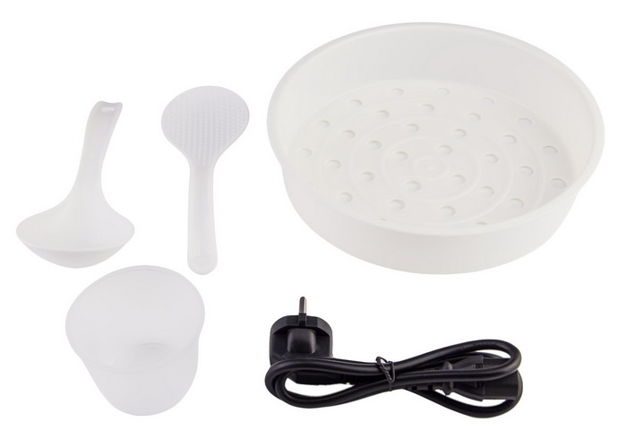 Принадлежности: ложка для перемешивания, половник, чаша, емкость для приготовления на пару, мерный стакан, съемный сетевой провод