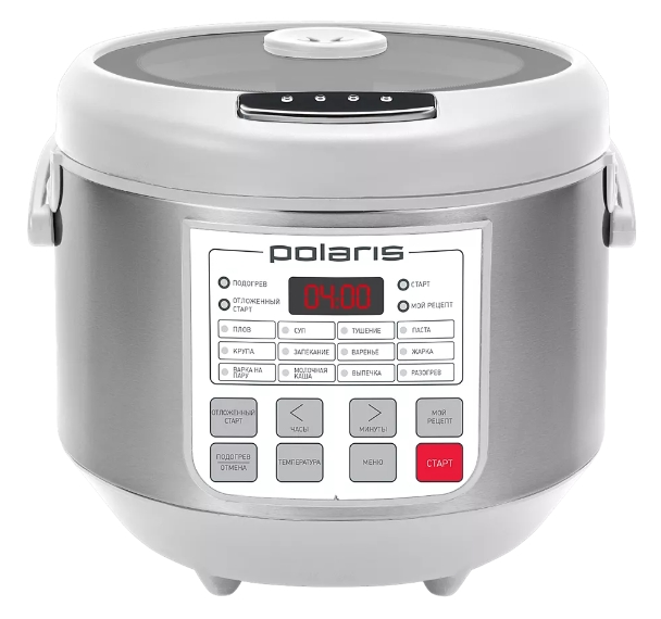 Режимы работы: Мой рецепт, Плов, Суп, Тушение, Паста, Крупа, Запекание, Варенье, Жарка, Варка на пару, Молочная каша, Выпечка, Разогрев.