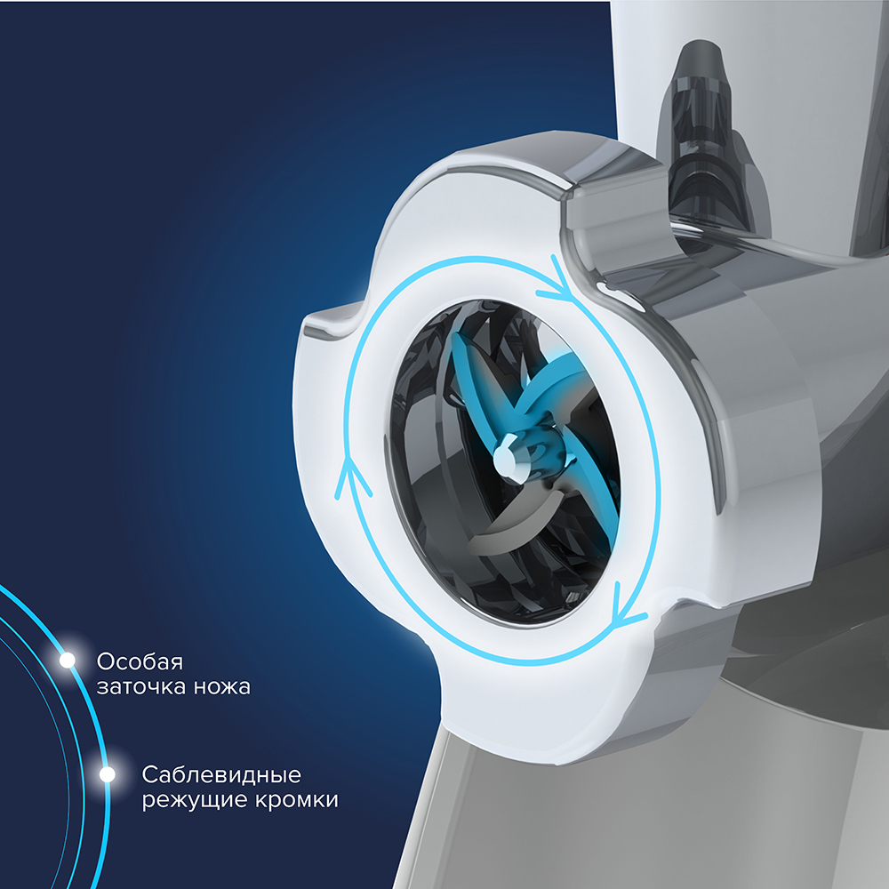 • Функция «реверс» для предотвращения наматывания жилок на шнек