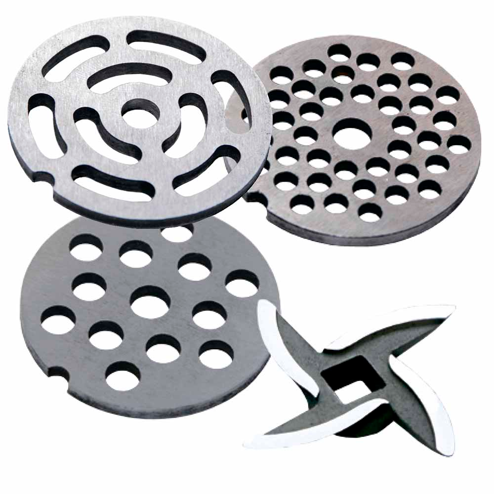 3 вида решеток для получения фарша разной консистенции - с диаметром отверстий 4,9 мм и 7 мм, а также овальными отверстиями;