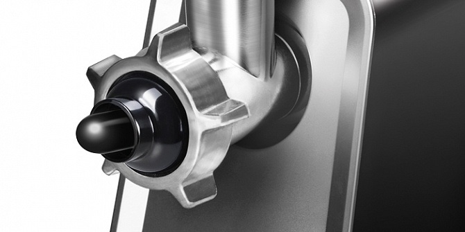 1216 оснащена сверхострым ножом, способным легко и быстро справиться даже с самыми твёрдыми продуктами, толкателем, обеспечивающим полностью безопасное использование мясорубки и практичным отсеком для хранения дисков в корпусе устройства. Вы будете абсолютно довольны!