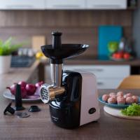 Высокая мощность мотора мясорубки 2200 Вт позволяет перерабатывать любое мясо в однородный фарш, а производительность модели достигает 2.5 кг/ мин.