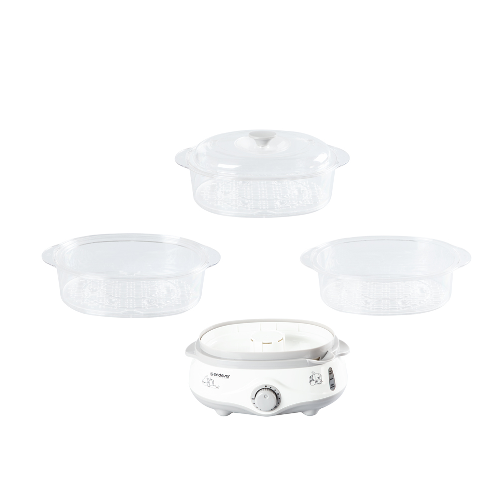Корпус и лотки пароварки выполнены из высококачественного жаропрочного пластика, он не допускает попадание вредных веществ в пищу, является прочным, надежным и безопасным. Пароварка Endever Vita-170 обладает механическим таймером на 60 мин, этого времени достаточно для приготовления практически любых блюд на пару.